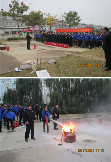 進(jìn)入冬季,氣候干燥少雨,空氣濕度相對較小,是較易發(fā)生火災(zāi)的季節(jié)。六安索伊充分認(rèn)識(shí)到防火和消防工作的重要性和緊迫性,認(rèn)真部署和組織開展冬季消防演練活動(dòng),此舉旨在提升員工消防安全意識(shí)和處置突發(fā)火災(zāi)的應(yīng)對能力。11月16日,天氣陰有小雨,冬季消防大演練并沒有因天氣的原因而取消。下午的消防大演練如期舉行。在公司西門附近的空曠地帶上,“2012年度索伊公司冬季消防演練”的紅底黃字條幅格外醒目,隔離帶已拉好,數(shù)瓶滅火器整齊排練一旁。幾只半截廢棄油桶中堆放滿了干柴,工作人員還通過幾個(gè)塑料壺在往干柴上澆著汽油,為實(shí)際演練做好準(zhǔn)備。