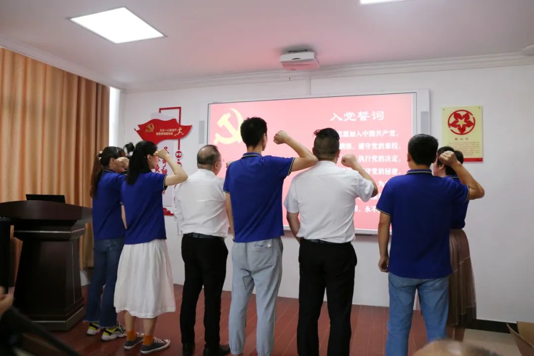 大會在高亢激揚的《沒有共產黨就沒有新中國的》大合唱中開始,全體黨員共同高歌,表達了對黨的無比忠誠和熱愛。接著六名新黨員舉行了入黨宣誓,老黨員重溫入黨誓詞活動。