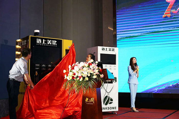 此次會議上,索伊二代無人智能咖啡飲料機亮相。據了解,該系列產品在延續(xù)索伊咖啡現磨工藝的同時,在AI和新零售大數據平臺管理優(yōu)勢的基礎上,采用全封閉箱體發(fā)泡設計,兼顧了冰熱、冷熱、粉機等等多種功能。也就是說,索伊二代無人智能咖啡飲料機除了可以提供各種口味的現磨咖啡之外,還可以提供其他沖泡式飲料,8+1組合可滿足60多種食材口味自由搭配。