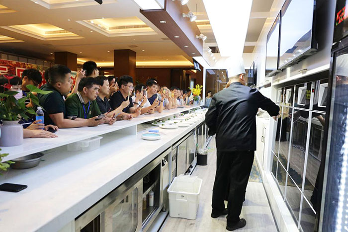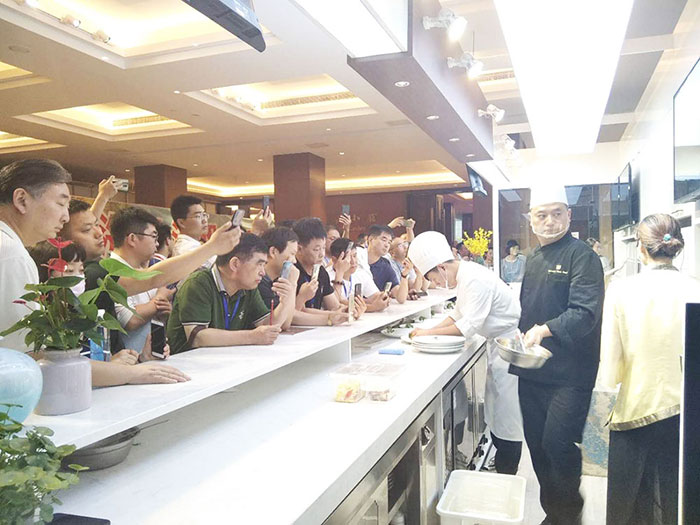 參會人員對酒店現場展出演示的味霸機器人廚師體驗館表示出了極大的興趣,紛紛圍觀拍照、咨詢體驗