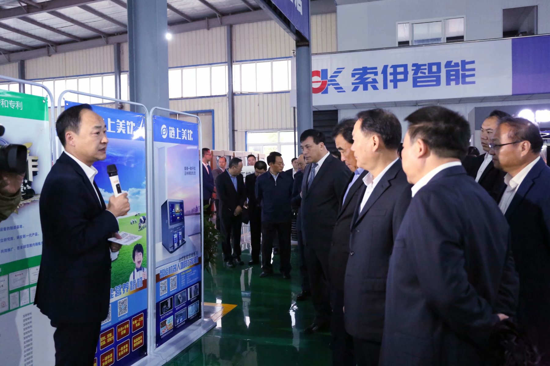 啟動(dòng)儀式召開(kāi)前,參會(huì)人員一行60余人來(lái)到安徽索伊集團(tuán)智能產(chǎn)品生產(chǎn)車間,聽(tīng)取了該公司董事長(zhǎng)助理倪曙東關(guān)于智能工廠的產(chǎn)線配備、布局、建設(shè)目標(biāo),云餐工程的產(chǎn)業(yè)鏈及下一步實(shí)施云餐工程的步驟和規(guī)劃,參觀了愛(ài)餐機(jī)器人炒菜機(jī)生產(chǎn)線和索伊集團(tuán)產(chǎn)品展示廳,了解了云餐工程產(chǎn)業(yè)鏈中的無(wú)人售貨柜、生鮮自提柜及第二代智能飲料咖啡機(jī)等產(chǎn)品。與會(huì)領(lǐng)導(dǎo)來(lái)到索伊君瀾大酒店愛(ài)餐機(jī)器人體驗(yàn)館,現(xiàn)場(chǎng)觀看了愛(ài)餐機(jī)器人炒菜的制作過(guò)程,品嘗了機(jī)器人的美味佳肴。