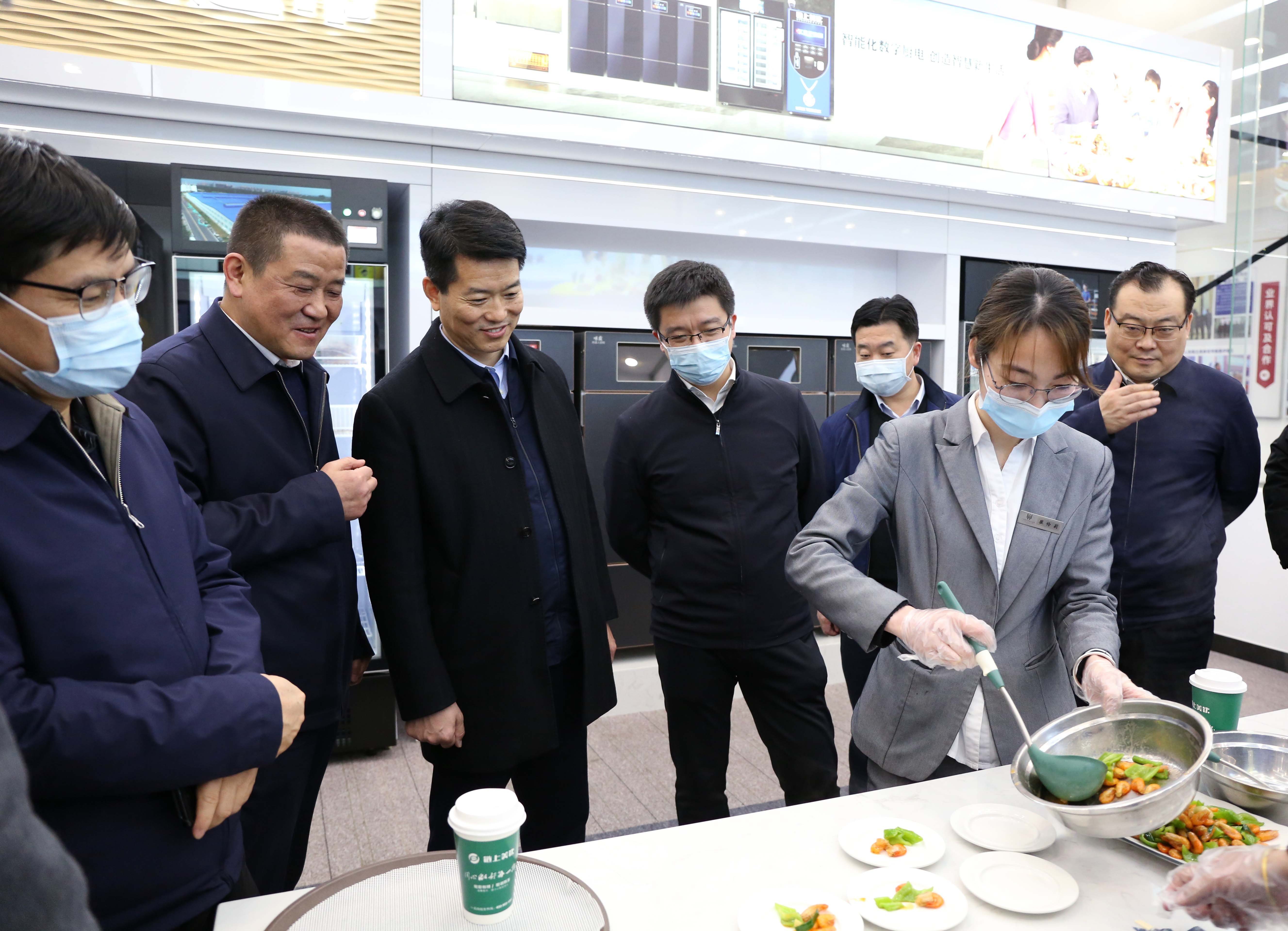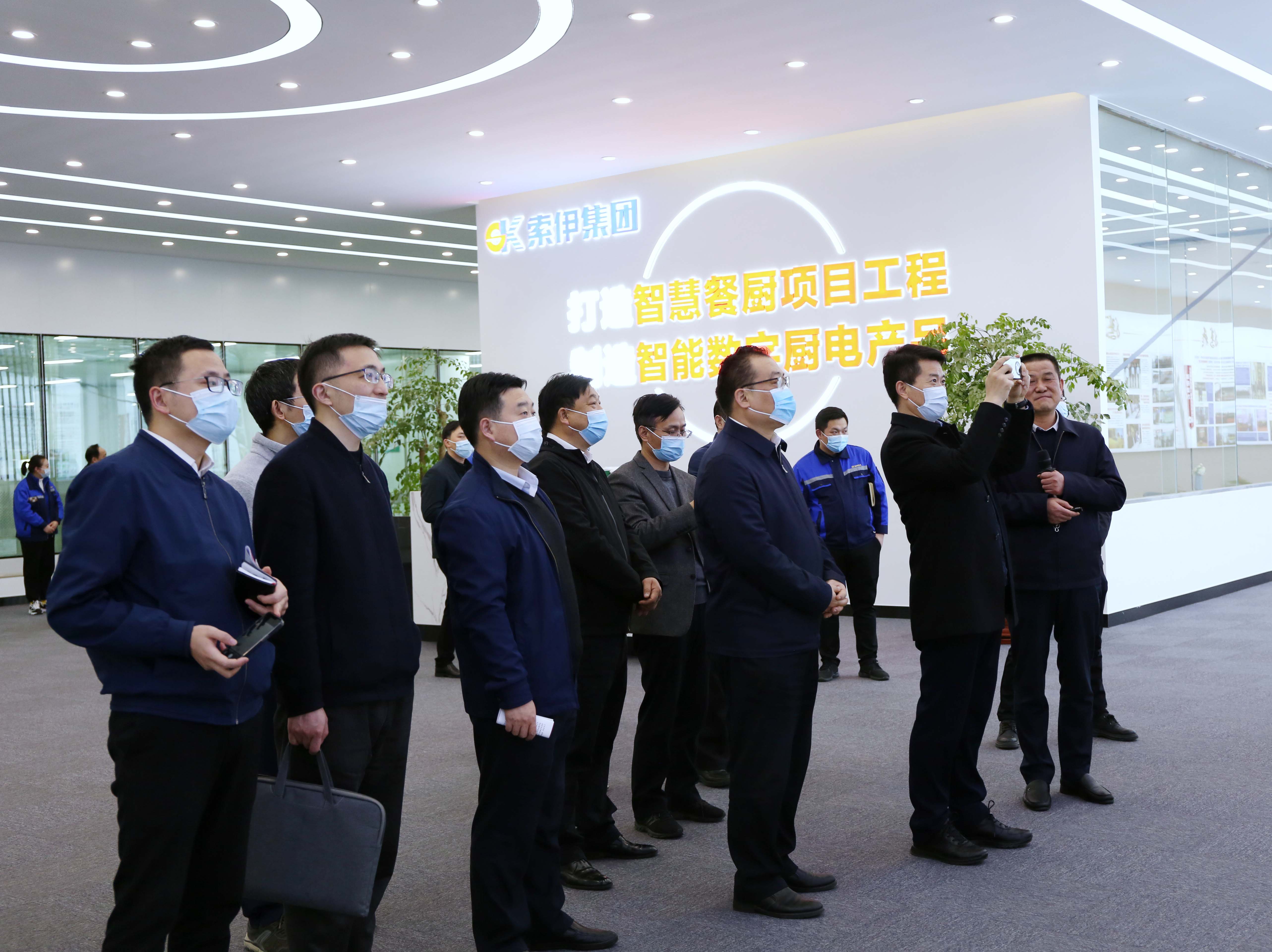 接著各位領(lǐng)導(dǎo)來到集團(tuán)轉(zhuǎn)型展示廳,王董事長向大家介紹了索伊集團(tuán)的發(fā)展歷程,以及企業(yè)如何走轉(zhuǎn)型升級之路,通過多年的探索,最終確定以“智慧餐廚項目工程”為核心的發(fā)展方向,以“智能化數(shù)字廚電新產(chǎn)品”研發(fā)、制造和應(yīng)用為核心的智能化數(shù)字化產(chǎn)業(yè)集群。創(chuàng)造性提煉出了二十一世紀(jì)餐飲行業(yè)發(fā)展的“八化”趨勢,即“餐飲品牌化、廚房中央化、消費(fèi)智能化、應(yīng)用廣泛化、品質(zhì)一致化、品種多元化、食安溯源化、運(yùn)營標(biāo)準(zhǔn)化”。張省長聽了覺得很有創(chuàng)意,也非常有道理,高興地拿出手機(jī)拍下了“八化”的內(nèi)容。并對索伊集團(tuán)的戰(zhàn)略眼光,超前思維,精辟總結(jié)大為贊賞。更對索伊集團(tuán)把錢學(xué)森在1995年提出的“烹飪工業(yè)化將出現(xiàn)在21世紀(jì)中國的第六次產(chǎn)業(yè)革命中”這一偉大構(gòu)想,變成現(xiàn)實給予點(diǎn)贊。張省聽取了王瓊峰董事長的匯報后,對索伊集團(tuán)的智慧餐廚項目工程給予充分的肯定。