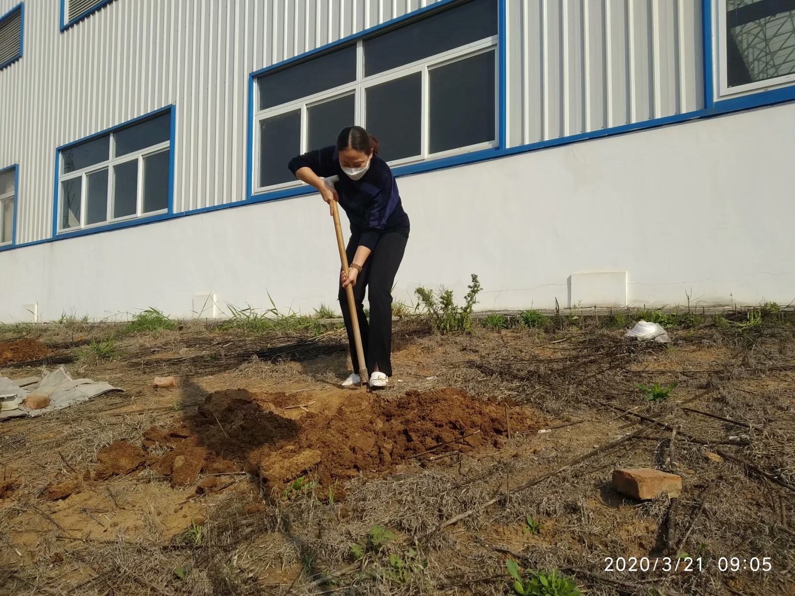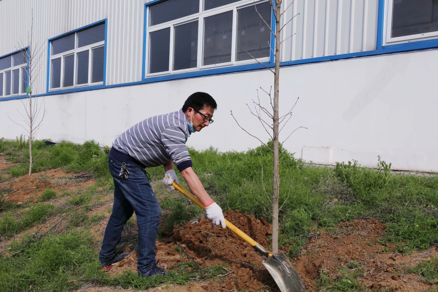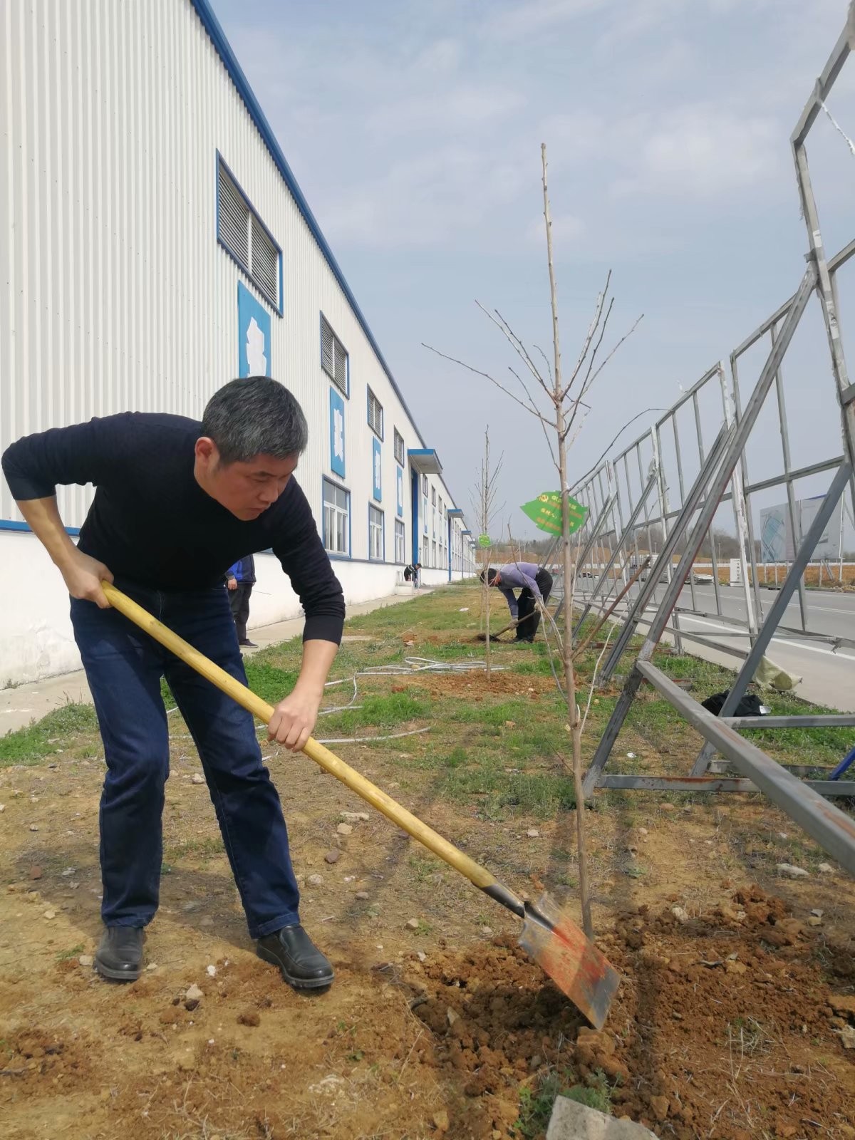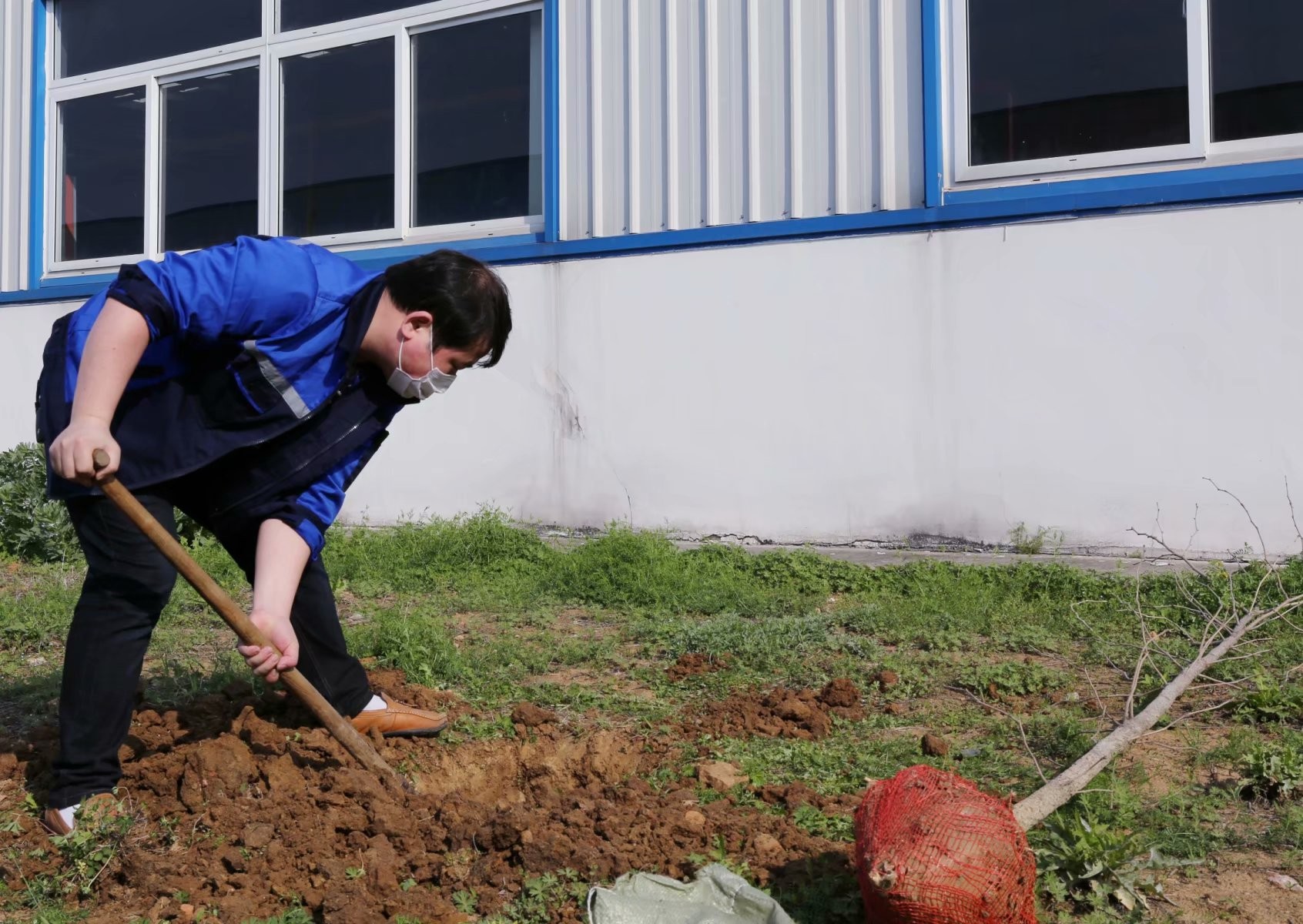 上午九點(diǎn),身著索伊藍(lán)新工裝的黨員們,帶著鐵鍬、摑頭、水桶等植樹工具來到索伊二期。目前由于二期尚在建設(shè)中,綠化沒有規(guī)劃和布局,每到春天,這里雜草叢生,到了秋天,更是枯樹雜枝蔓延,不僅不美觀,而且存在安全隱患。公司黨委委員、機(jī)關(guān)黨支部書記施軍在機(jī)關(guān)黨組織2020年度《服務(wù)計劃書》中提出建議,在志愿服務(wù)活動中開展植樹活動,建立黨員大道。建議一提出,公司黨委認(rèn)為這個合理化建議提的好,而且正值植樹的好時節(jié),從提出建議到實施僅兩天的時間,一方面下發(fā)黨員義務(wù)植樹通知,另一方面購置銀杏樹苗,全體黨員也是積極性高漲,生產(chǎn)黨支部的黨員們今天休息,但一大早就來到了植樹點(diǎn),大家迎著陽光,挖樹坑、放營養(yǎng)肥、插樹苗、培土、澆水,爭先恐后,齊心協(xié)力,有條不紊,整個過程輕松愉快。機(jī)關(guān)黨支部的陣容更為龐大,大家分工明確,相互配合,相互幫助,按專家老師的指導(dǎo)去做,植樹現(xiàn)場不時傳來歡聲笑語。興大黨支部把好的地理位置讓給了別人,選擇二期靠西北角的位置植樹,老黨員冉勝利是個植樹的高手,他說培土是有講究的,而且還要有擋水坡,這樣才能保證樹木有足夠的水分。索伊君瀾大酒店黨支部是去年底剛成立的支部,第一次參加黨員活動,他們非常的興奮,不時地?fù)]動著鐵鍬和鋤頭,認(rèn)真的培土,一棵棵新栽的苗木在陽光下欣欣向榮。原料內(nèi)配黨支部黨員少,但干起活來也非常的賣力,不過,由于他們干的早,走了些彎路,他們竟然把包樹根球的塑料袋也埋進(jìn)樹坑里,一切都搞好了,不符合要求,必須返工重來。黨員鄭彬、孫玉勝、江開勝、傅業(yè)慶由于有會議沖突,不能按時參加,但會議結(jié)束后,依然來到植樹現(xiàn)場,按要求每人種下一棵樹。