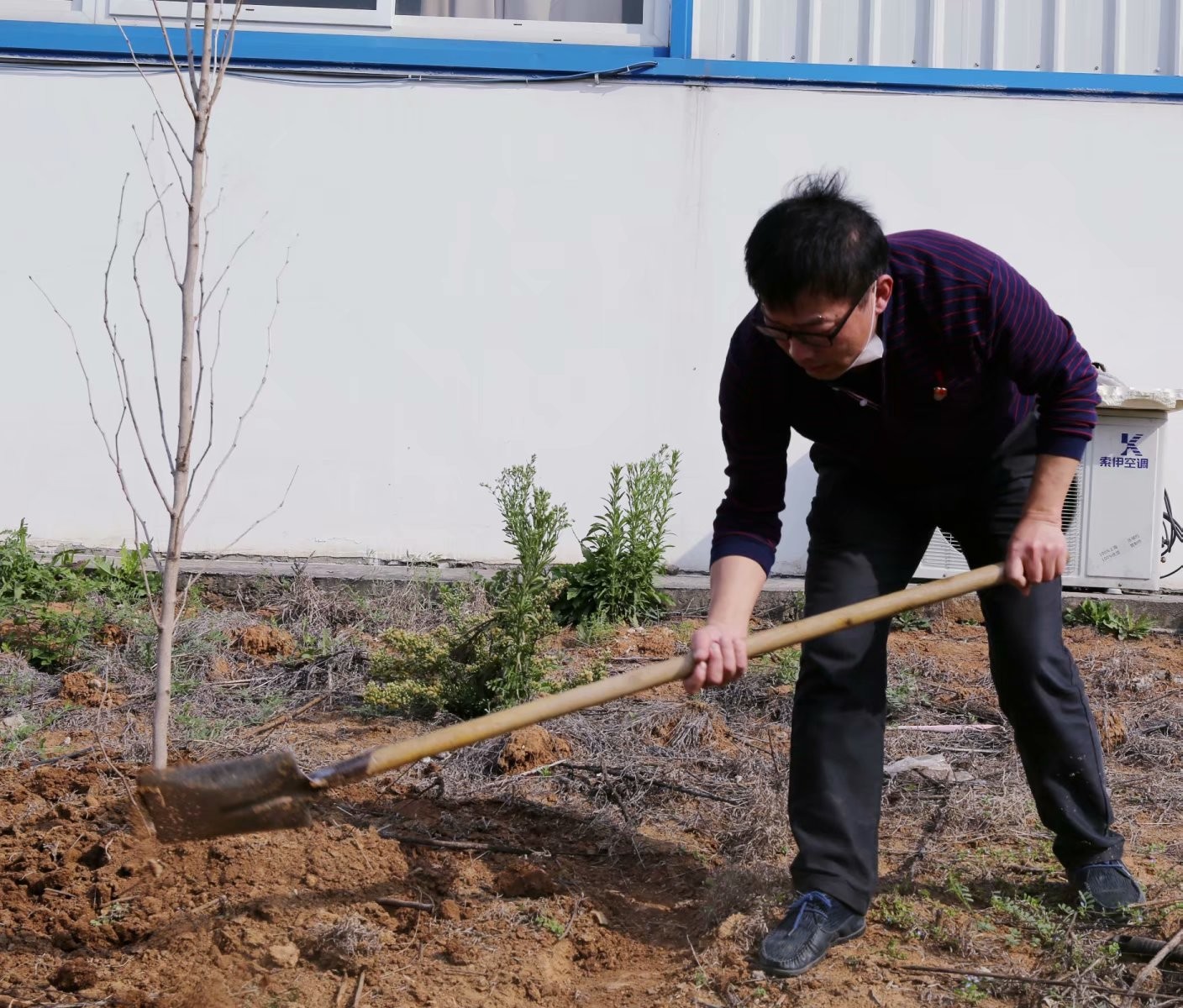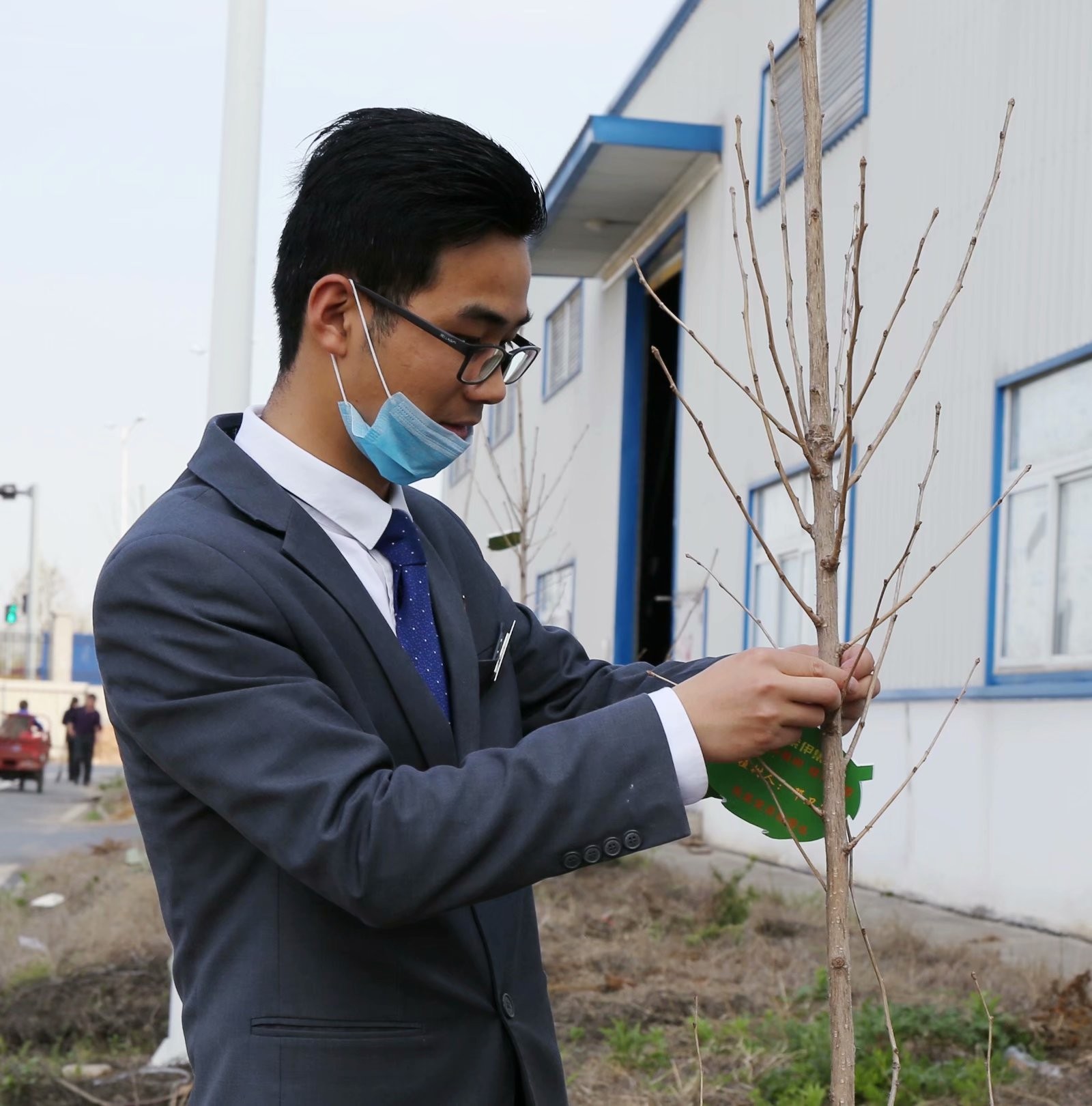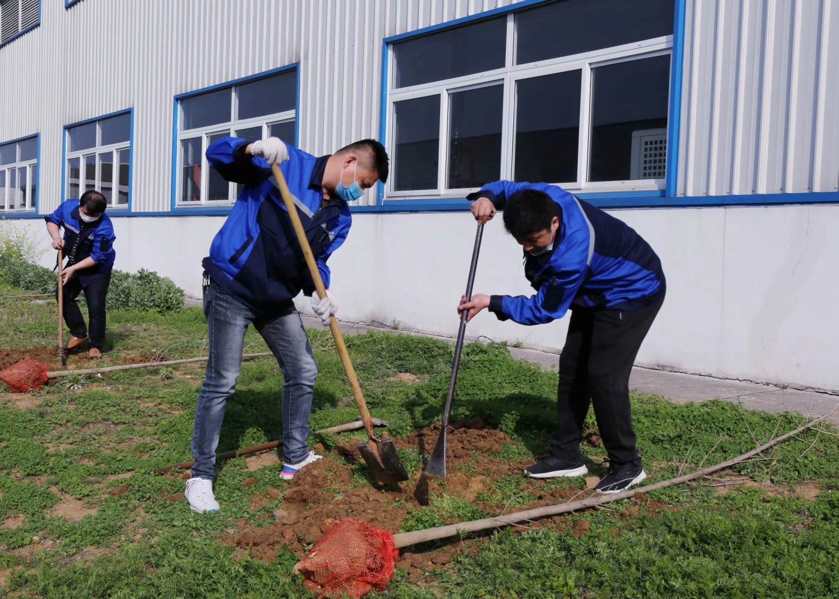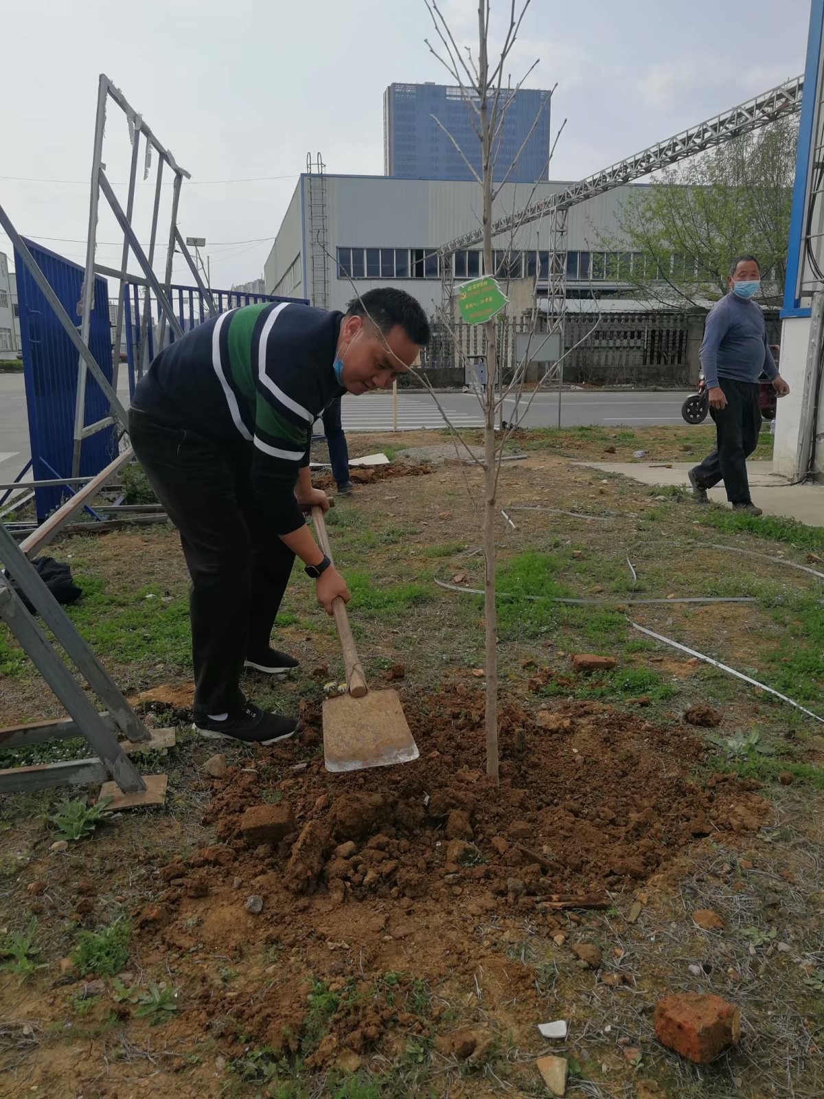 上午九點(diǎn),身著索伊藍(lán)新工裝的黨員們,帶著鐵鍬、摑頭、水桶等植樹工具來到索伊二期。目前由于二期尚在建設(shè)中,綠化沒有規(guī)劃和布局,每到春天,這里雜草叢生,到了秋天,更是枯樹雜枝蔓延,不僅不美觀,而且存在安全隱患。公司黨委委員、機(jī)關(guān)黨支部書記施軍在機(jī)關(guān)黨組織2020年度《服務(wù)計劃書》中提出建議,在志愿服務(wù)活動中開展植樹活動,建立黨員大道。建議一提出,公司黨委認(rèn)為這個合理化建議提的好,而且正值植樹的好時節(jié),從提出建議到實施僅兩天的時間,一方面下發(fā)黨員義務(wù)植樹通知,另一方面購置銀杏樹苗,全體黨員也是積極性高漲,生產(chǎn)黨支部的黨員們今天休息,但一大早就來到了植樹點(diǎn),大家迎著陽光,挖樹坑、放營養(yǎng)肥、插樹苗、培土、澆水,爭先恐后,齊心協(xié)力,有條不紊,整個過程輕松愉快。機(jī)關(guān)黨支部的陣容更為龐大,大家分工明確,相互配合,相互幫助,按專家老師的指導(dǎo)去做,植樹現(xiàn)場不時傳來歡聲笑語。興大黨支部把好的地理位置讓給了別人,選擇二期靠西北角的位置植樹,老黨員冉勝利是個植樹的高手,他說培土是有講究的,而且還要有擋水坡,這樣才能保證樹木有足夠的水分。索伊君瀾大酒店黨支部是去年底剛成立的支部,第一次參加黨員活動,他們非常的興奮,不時地?fù)]動著鐵鍬和鋤頭,認(rèn)真的培土,一棵棵新栽的苗木在陽光下欣欣向榮。原料內(nèi)配黨支部黨員少,但干起活來也非常的賣力,不過,由于他們干的早,走了些彎路,他們竟然把包樹根球的塑料袋也埋進(jìn)樹坑里,一切都搞好了,不符合要求,必須返工重來。黨員鄭彬、孫玉勝、江開勝、傅業(yè)慶由于有會議沖突,不能按時參加,但會議結(jié)束后,依然來到植樹現(xiàn)場,按要求每人種下一棵樹。