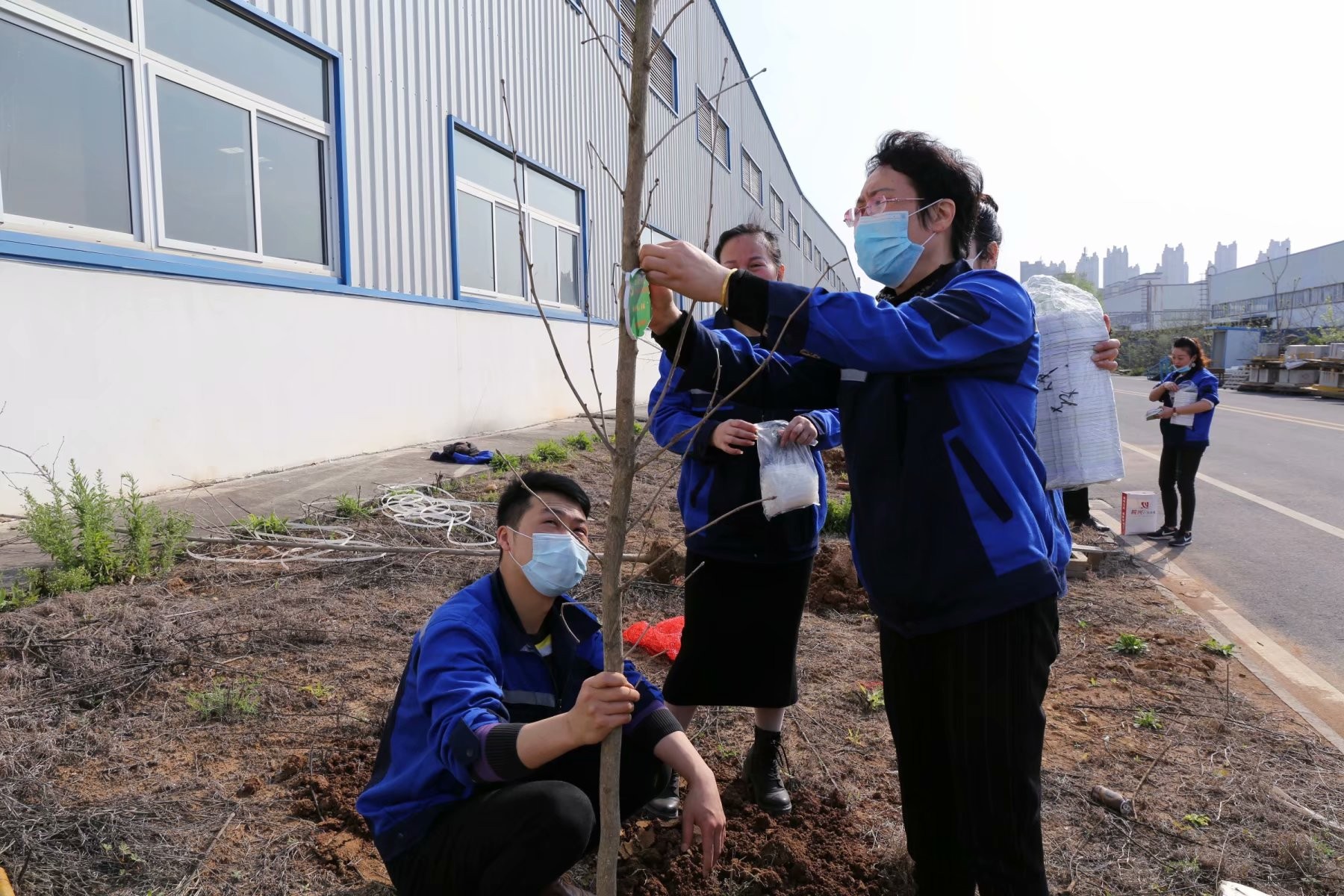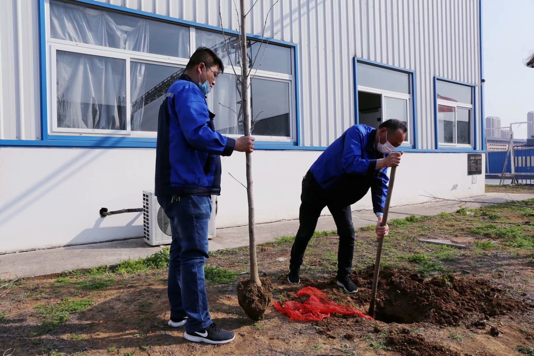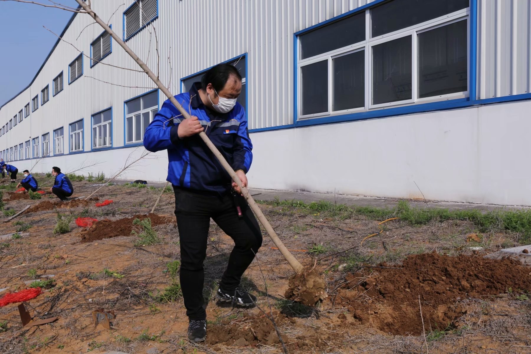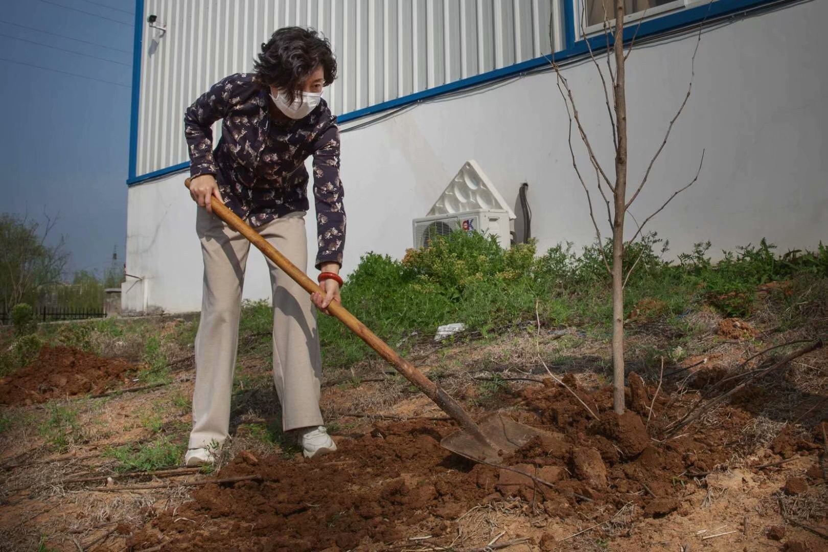 上午九點(diǎn),身著索伊藍(lán)新工裝的黨員們,帶著鐵鍬、摑頭、水桶等植樹工具來到索伊二期。目前由于二期尚在建設(shè)中,綠化沒有規(guī)劃和布局,每到春天,這里雜草叢生,到了秋天,更是枯樹雜枝蔓延,不僅不美觀,而且存在安全隱患。公司黨委委員、機(jī)關(guān)黨支部書記施軍在機(jī)關(guān)黨組織2020年度《服務(wù)計劃書》中提出建議,在志愿服務(wù)活動中開展植樹活動,建立黨員大道。建議一提出,公司黨委認(rèn)為這個合理化建議提的好,而且正值植樹的好時節(jié),從提出建議到實施僅兩天的時間,一方面下發(fā)黨員義務(wù)植樹通知,另一方面購置銀杏樹苗,全體黨員也是積極性高漲,生產(chǎn)黨支部的黨員們今天休息,但一大早就來到了植樹點(diǎn),大家迎著陽光,挖樹坑、放營養(yǎng)肥、插樹苗、培土、澆水,爭先恐后,齊心協(xié)力,有條不紊,整個過程輕松愉快。機(jī)關(guān)黨支部的陣容更為龐大,大家分工明確,相互配合,相互幫助,按專家老師的指導(dǎo)去做,植樹現(xiàn)場不時傳來歡聲笑語。興大黨支部把好的地理位置讓給了別人,選擇二期靠西北角的位置植樹,老黨員冉勝利是個植樹的高手,他說培土是有講究的,而且還要有擋水坡,這樣才能保證樹木有足夠的水分。索伊君瀾大酒店黨支部是去年底剛成立的支部,第一次參加黨員活動,他們非常的興奮,不時地?fù)]動著鐵鍬和鋤頭,認(rèn)真的培土,一棵棵新栽的苗木在陽光下欣欣向榮。原料內(nèi)配黨支部黨員少,但干起活來也非常的賣力,不過,由于他們干的早,走了些彎路,他們竟然把包樹根球的塑料袋也埋進(jìn)樹坑里,一切都搞好了,不符合要求,必須返工重來。黨員鄭彬、孫玉勝、江開勝、傅業(yè)慶由于有會議沖突,不能按時參加,但會議結(jié)束后,依然來到植樹現(xiàn)場,按要求每人種下一棵樹。
