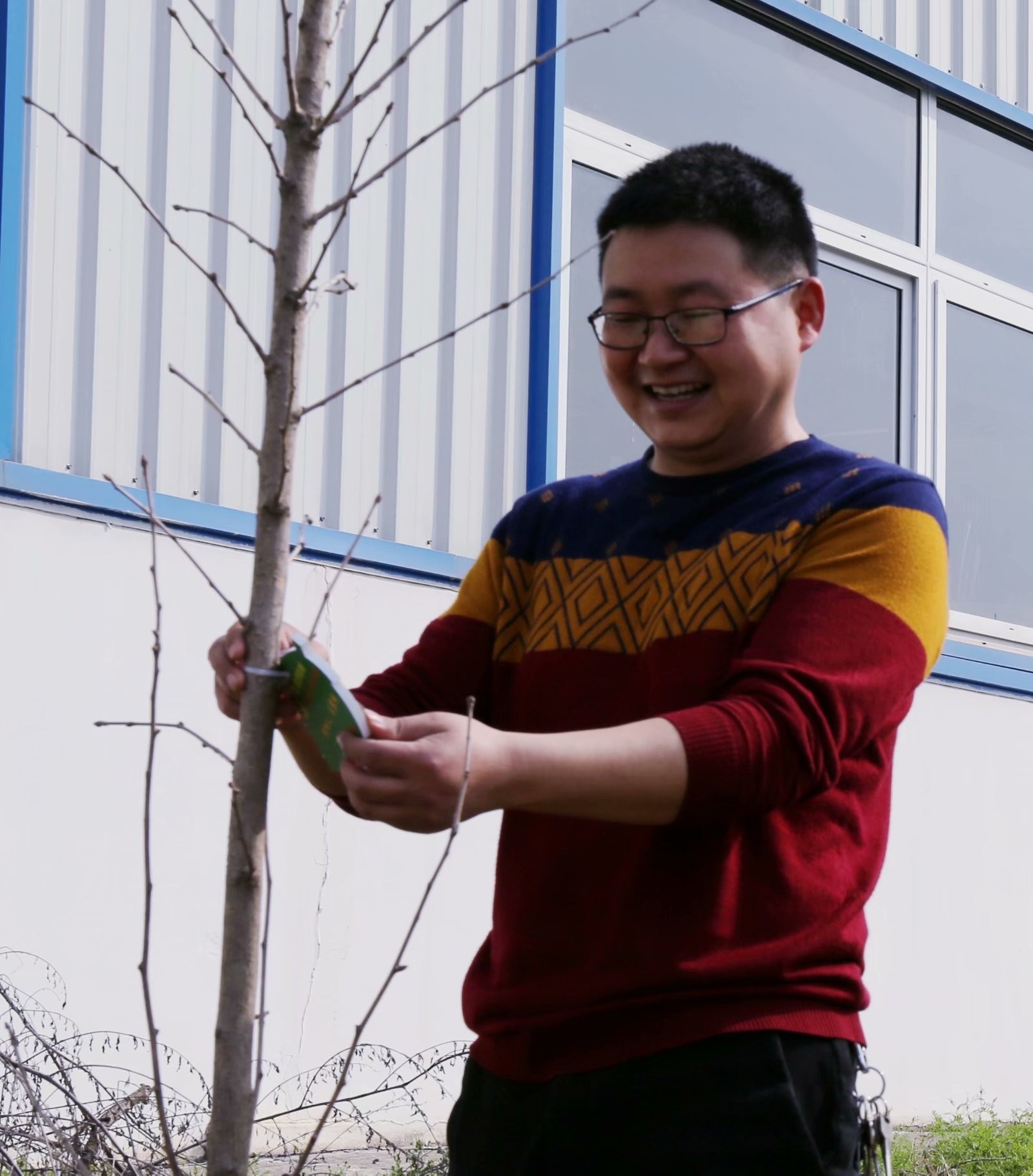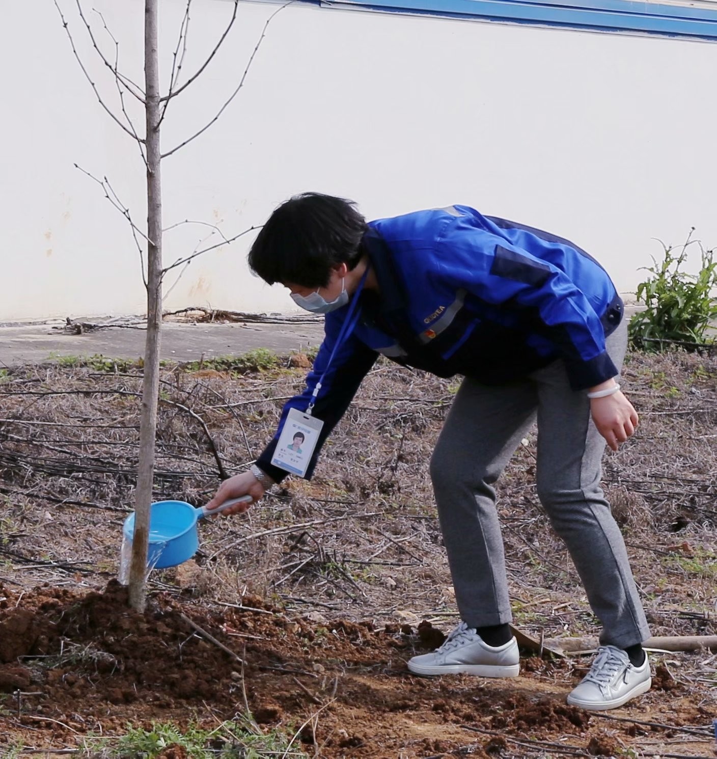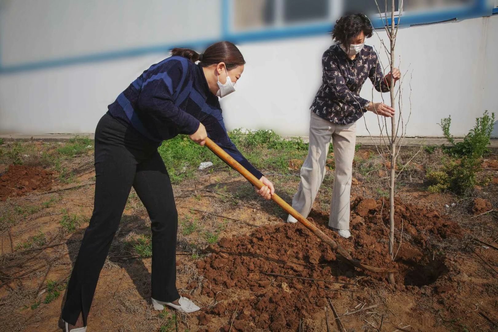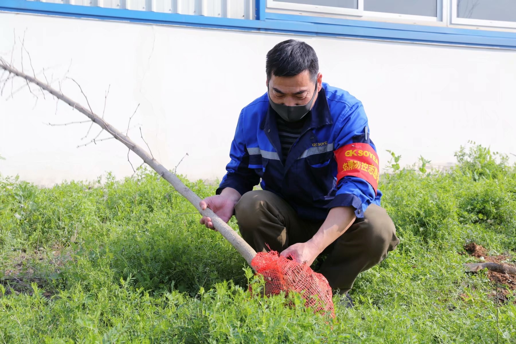 上午九點(diǎn),身著索伊藍(lán)新工裝的黨員們,帶著鐵鍬、摑頭、水桶等植樹工具來到索伊二期。目前由于二期尚在建設(shè)中,綠化沒有規(guī)劃和布局,每到春天,這里雜草叢生,到了秋天,更是枯樹雜枝蔓延,不僅不美觀,而且存在安全隱患。公司黨委委員、機(jī)關(guān)黨支部書記施軍在機(jī)關(guān)黨組織2020年度《服務(wù)計劃書》中提出建議,在志愿服務(wù)活動中開展植樹活動,建立黨員大道。建議一提出,公司黨委認(rèn)為這個合理化建議提的好,而且正值植樹的好時節(jié),從提出建議到實施僅兩天的時間,一方面下發(fā)黨員義務(wù)植樹通知,另一方面購置銀杏樹苗,全體黨員也是積極性高漲,生產(chǎn)黨支部的黨員們今天休息,但一大早就來到了植樹點(diǎn),大家迎著陽光,挖樹坑、放營養(yǎng)肥、插樹苗、培土、澆水,爭先恐后,齊心協(xié)力,有條不紊,整個過程輕松愉快。機(jī)關(guān)黨支部的陣容更為龐大,大家分工明確,相互配合,相互幫助,按專家老師的指導(dǎo)去做,植樹現(xiàn)場不時傳來歡聲笑語。興大黨支部把好的地理位置讓給了別人,選擇二期靠西北角的位置植樹,老黨員冉勝利是個植樹的高手,他說培土是有講究的,而且還要有擋水坡,這樣才能保證樹木有足夠的水分。索伊君瀾大酒店黨支部是去年底剛成立的支部,第一次參加黨員活動,他們非常的興奮,不時地?fù)]動著鐵鍬和鋤頭,認(rèn)真的培土,一棵棵新栽的苗木在陽光下欣欣向榮。原料內(nèi)配黨支部黨員少,但干起活來也非常的賣力,不過,由于他們干的早,走了些彎路,他們竟然把包樹根球的塑料袋也埋進(jìn)樹坑里,一切都搞好了,不符合要求,必須返工重來。黨員鄭彬、孫玉勝、江開勝、傅業(yè)慶由于有會議沖突,不能按時參加,但會議結(jié)束后,依然來到植樹現(xiàn)場,按要求每人種下一棵樹。
