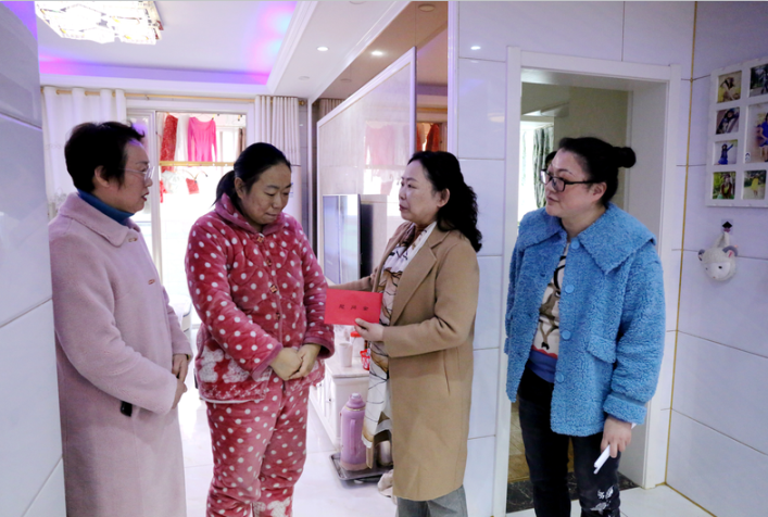 2021年2月22日六安開發(fā)區(qū)婦聯(lián)主席李學(xué)勤、索伊婦聯(lián)主席汪顯華為索伊尿毒癥患者王昌言送去慰問金并鼓勵她要以堅強(qiáng)的信心戰(zhàn)勝病痛。